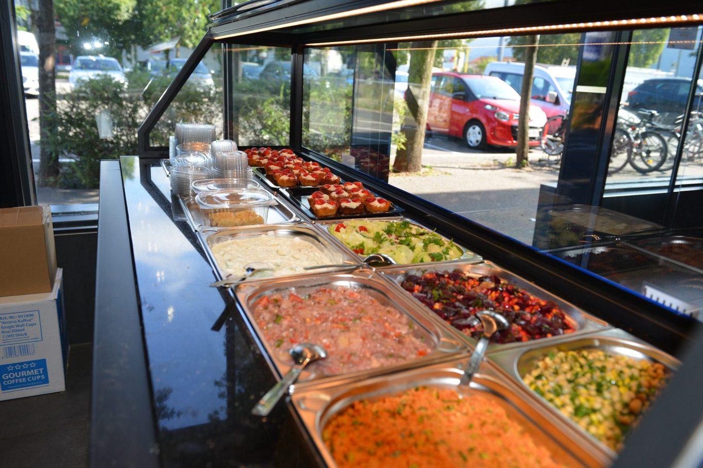 Zusätzlich bieten wir täglich frisch zubereitete Salate und Suppen, die nicht nur gesund, sondern auch ein wahrer Genuss sind. Von der herzhaften Linsensuppe bis hin zu erfrischenden Salaten wie rote Bete, Bulgur-Salat, grüner Salat und Gurkensalat mit Joghurt .